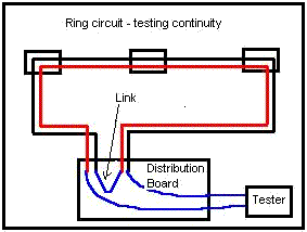 1. Ring Circuit Loop Test (dead test) Reason for the test: Ring Circuit loop testing ensures that any ring circuits wired in the installation are actually a ring circuit and not forming a radial, or 'figure of eight loops'. Results recorded as R1, Rn, R2. (one result for each core of a 3 core cable in a ring circuit) 1. First open the ends of the ring circuit at the consumer unit, (for all conductors). 2. Connect the live of one end of the ring to the neutral of the other end of the ring and test between the live and neutral remaining. This tests the cables in the ring in a double loop format, to ensure the conductors form a ring without figure of eights. Perform this test using a mega in Meg Ohms.